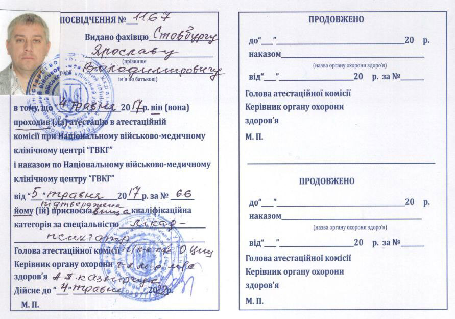 Стовбург Ярослав Володимирович — лікар-психіатр і лікар-нарколог вищої категорії з понад 20-річним досвідом роботи.